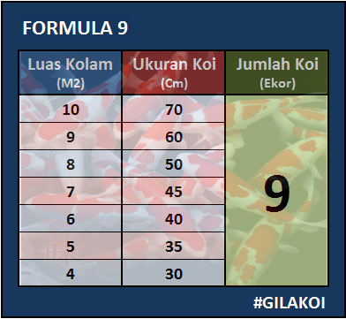 Untuk memperoleh jumlah Koi 9 ekor, dapat dilihat pada tabel Formula 9 berikut ini :