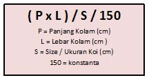 Untuk mengetahui jumlah ikan Koi ideal yang berada di dalam kolam, dapat digunakan rumus sebagai berikut :